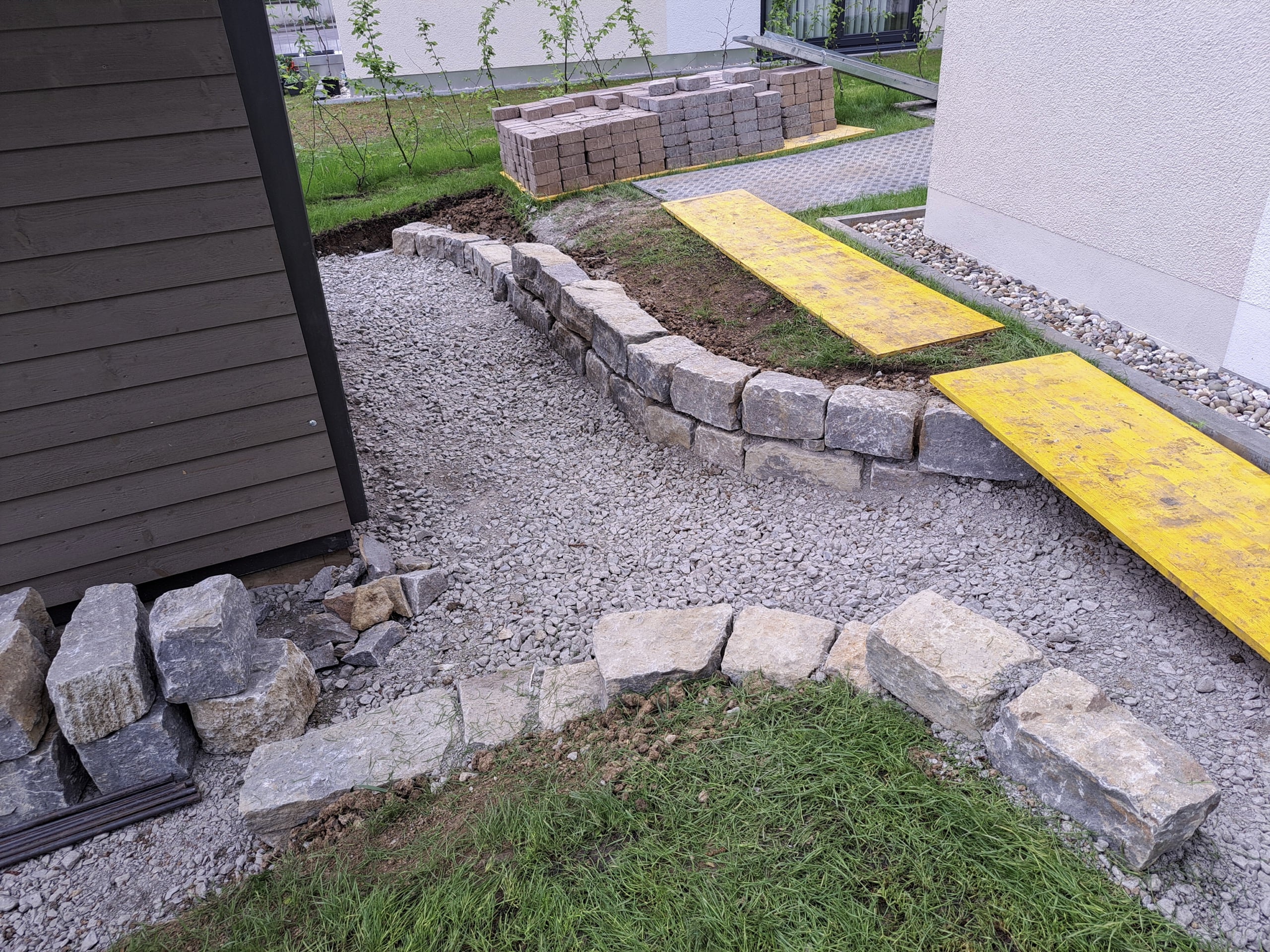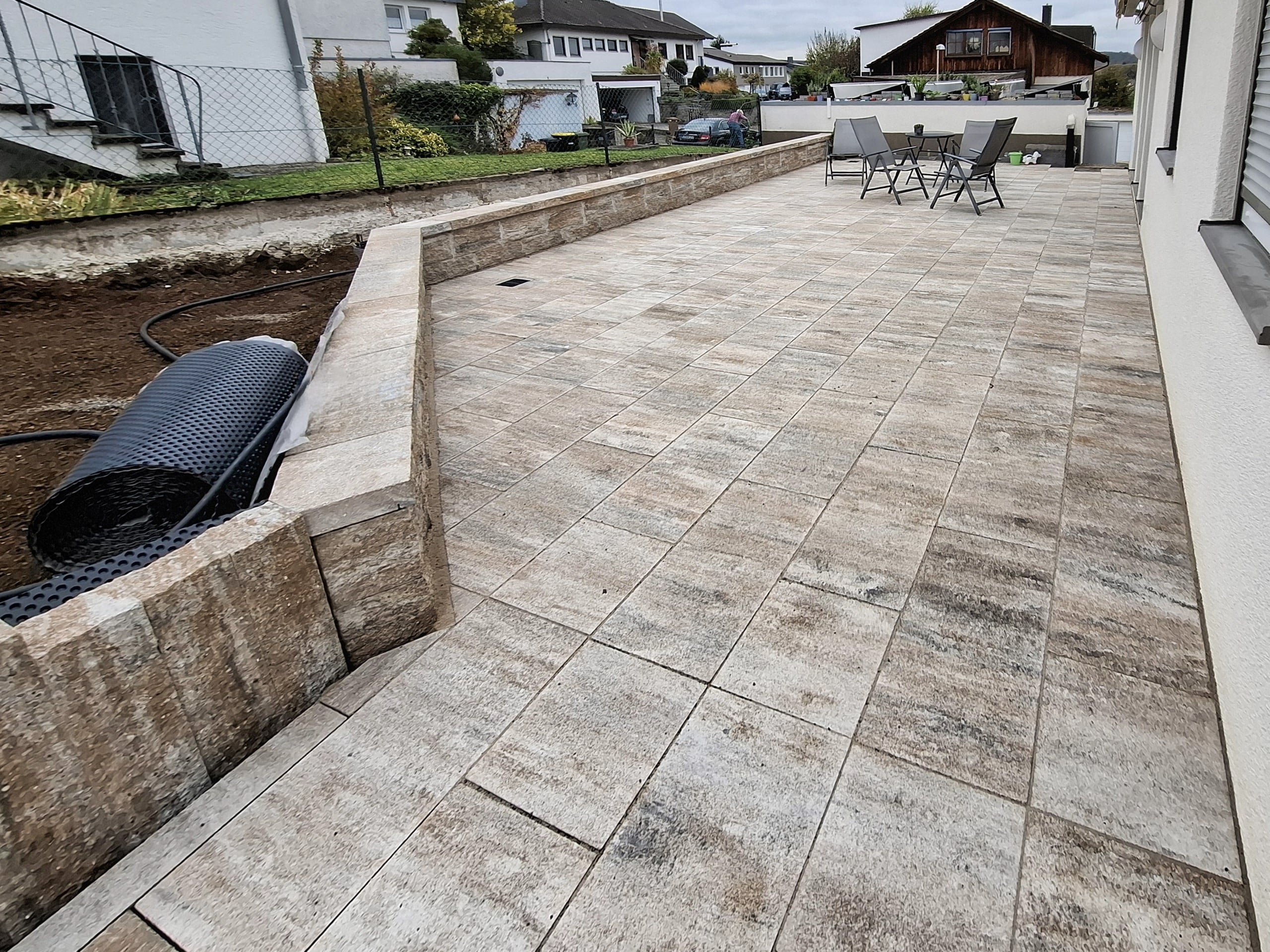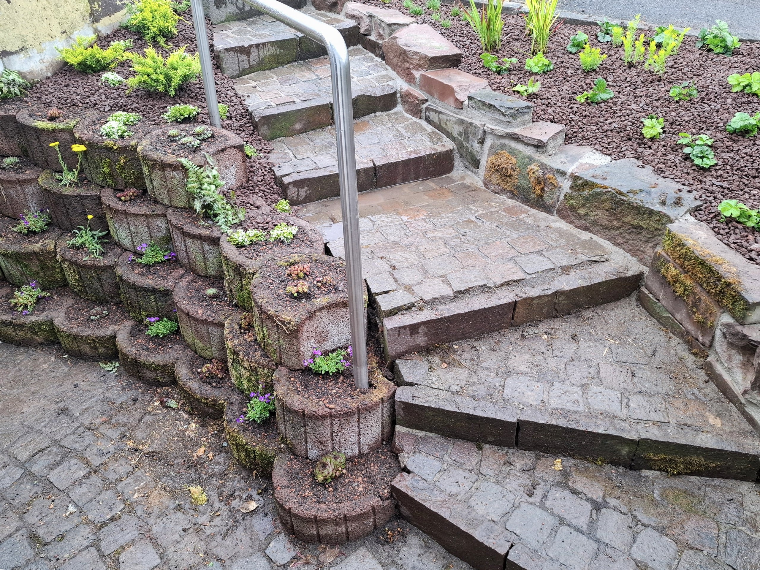 Terrassen, Wege, Natursteinflächen, Pflasterarbeiten, Mauern, Treppen.